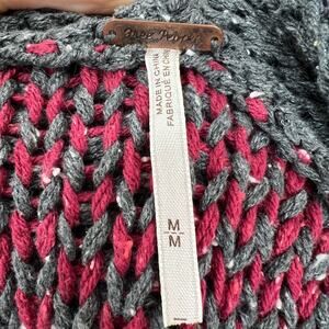Free People White Gray Red Fair Isle Print V-Neck Knit Hooded Sweater M Medium