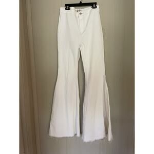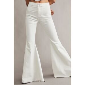 Free People White Just Float On Flare Bell Bottom Raw Hem Stretch Jeans 27