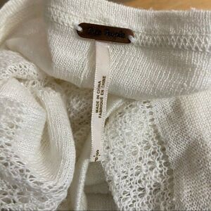Gently worn women size small free people white oversized burnout knit v-neck sweater. Slightly distressed look, lightweight knit, small high low, Comes from a smoke free home, bundle with other items to save & minimize shipping cost.