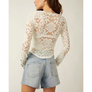 Elegant lace design. Floral patterns. Hook details on sleeve. Perfect for layering.