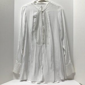 Free People White Pintuck Long Sleeve Tunic Blouse