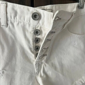 Free People White Run Away Slouch Button Raw Shorts Size 24