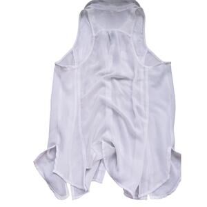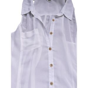 Free People White Sheer Sleeveless Button Down Collar Top Medium Light Academia