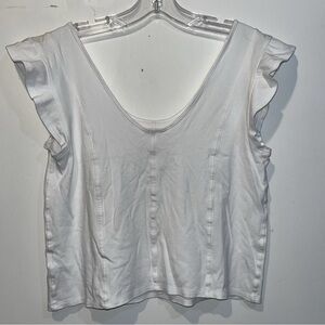 Chic white top with ruffle sleeves. Soft fabric for everyday wear.