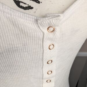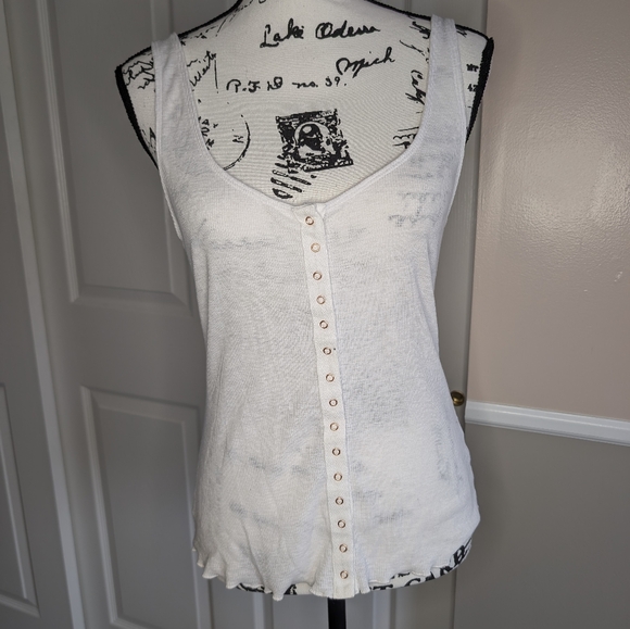 Free People White Sleeveless Button-Front Ribbed Tank