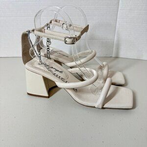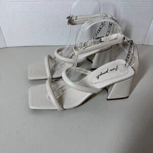 Free People White Strappy Block Heel Sandals Size 38 Square Toe Shoes