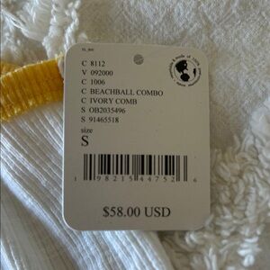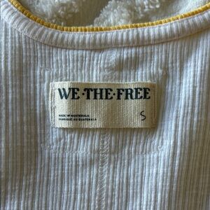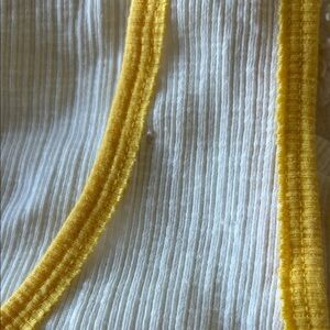 Stylish tank top by Free People. Features a white ribbed design with yellow trim. Perfect for casual wear. NWT but there is a tiny hole on tank, see pics.