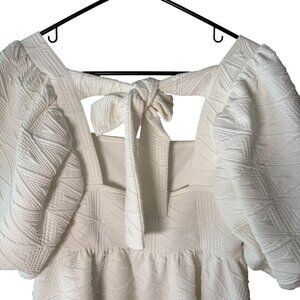 Free People White Textured Puff Sleeve Dress With Bow Tie Back Womens Size Small