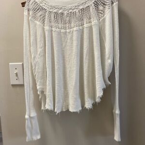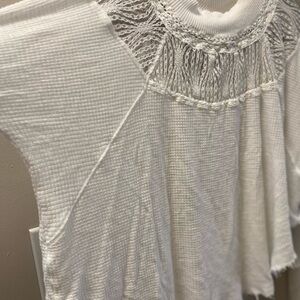 Free People White, Waffle, Raw Hem Top