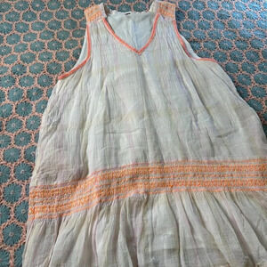 Free People White and Orange Plaid Cover Up Mini Dress Size XS