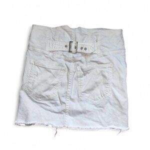 Free People White denim mini skirt with buckle belt on the back in size 2