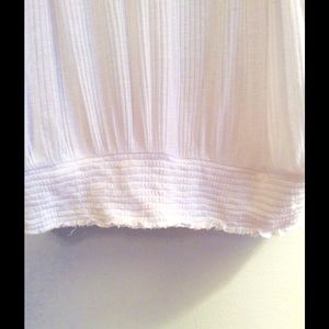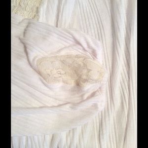 100% viscose, light material. Great for Spring! Sequence and lace detail on chest, 3/4 sleeves with lace and a button, frayed look across bottom hem. Loose fit