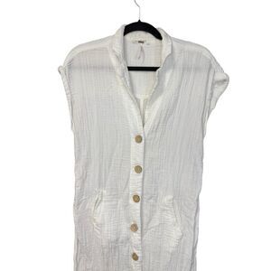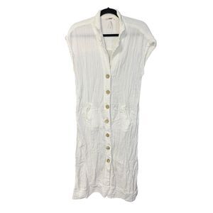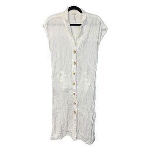 Free People White Cotton Gauze Button-Down Midi Dress – Size S 🤍✨
