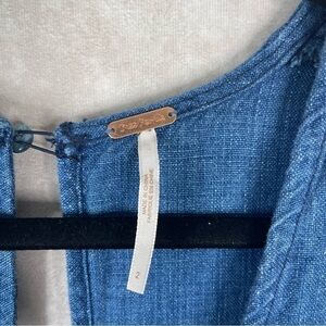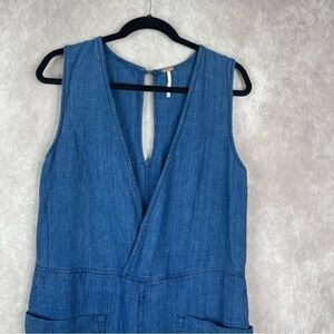 Free People Wide Leg Deep-V Linen Blue Chambray Jaimie Artisan Jumpsuit Size 2