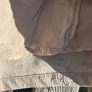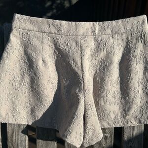These Free People shorts are super cute taupe colored neutral to add to your wardrobe. Size 4 with generous leg room for a flirty look to wear with a cute vest, top tucked in, tights for the cooler weather or bare legs and sandals. Flats, biker boots or heels change the look of this puckered embroidery short that is smooth -a poly/rayon blend with a very light liner built in. A unique staple.