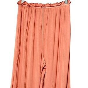 Free People Wide Leg Ruffle Elastic Split Waistband Soft Jersey Knit Pants