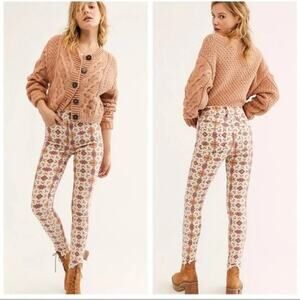 Free People Wild Child Printed Aztec High Waist Rise Skinny Jeans Size 31