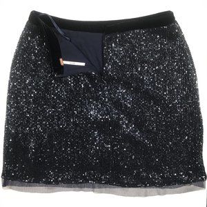 Free People Wild Child Sequined Mini Skirt size 6.The rich sheen of velvet encircles the waist of Free People’s stunning sequined mini in the palest pink hue—with a simple white tee and boots—ravishing with a silk cami . Get the party started in a glam sequin mini skirt from Free People. Waist 15", his 18", Length 23".