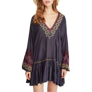 Free People Wild One Black Embroidered Boho Tunic Dress | Size Small