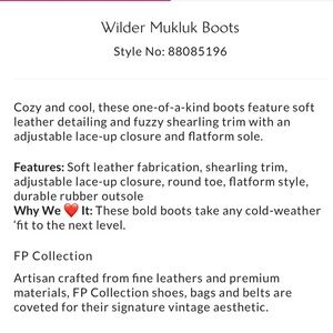 Free People Wilder Mukluk Shearling Boot Size 8 NIB