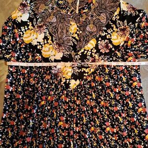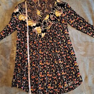 Free People Wildflower Fields Multi Color Long Sleeve Henley Top Size Small