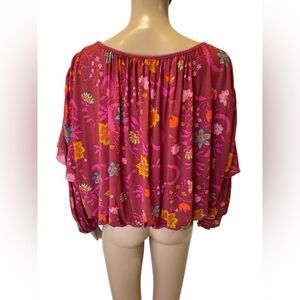 Elevate your style with this chic floral women's top. Featuring a vibrant red and pink design, this top is perfect for any occasion. Enjoy the comfort and elegance it brings to your wardrobe.