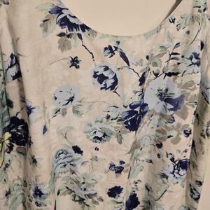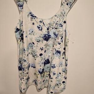 Free People Wildflower Printed Mini Dress. Ruffled cap strap sleeves. Cream with blue floral pattern. Lined.