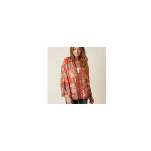 Free People Wildflower Zip Front Kimono Orange Floral Top Jacket Womens M/L