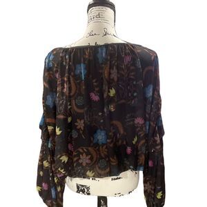 Gathered and ruffle detail top, elasticized cuffs and hem - partially lined with dropped shoulder seams