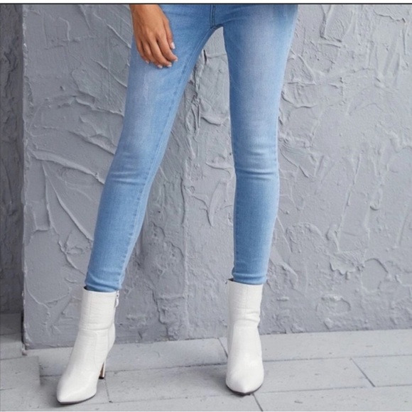 Free People “Willa” Heeled Vegan Leather White Textured Ankle Boots Size 8.5