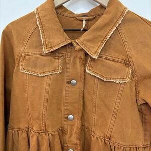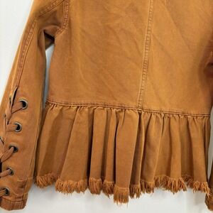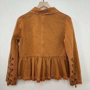Free People Willow Denim Jacket XS Rust/Brown Lace Up Cuffs Boho Western Forest