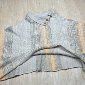 Free People Willow Poncho Cream Gray Sweater Pullover Oversized Aztec Medium