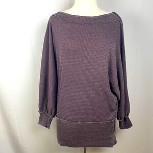 Free People Willow Waffle Off Shoulder Top Boho Dolman Sleeve Size Large Purple