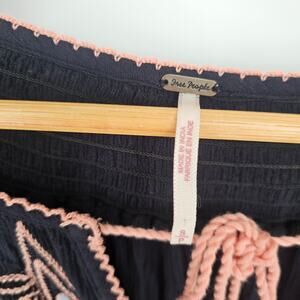 Free People Wind Willow Embroidered Boho V Neck Tassel Mini Dress Black Tag says Small - Based on Measurements it should fit up to a medium look at all measurements