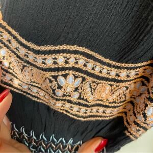 Free People Wind Willow Embroidered Navy Long Sleeve Mini Peasant Dress XS