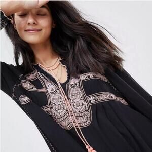 Free People Wind Willow Embroidered XS Black Shift Dress