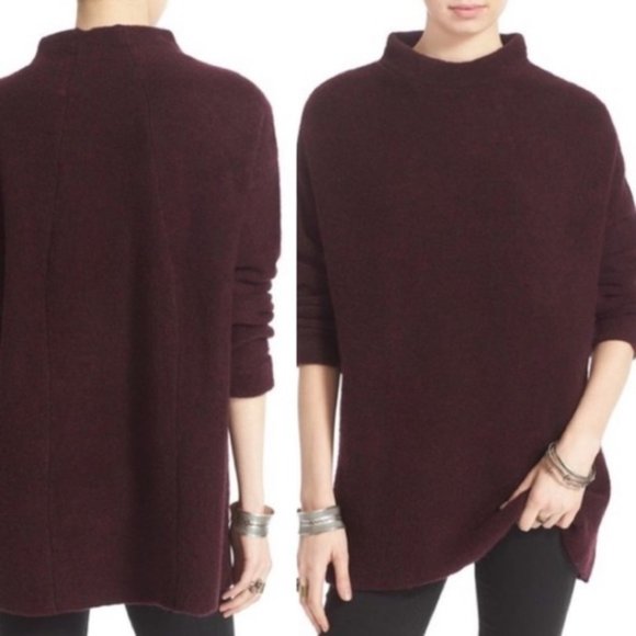 Free People Winding Ivy sweater XS/S Deep Merlot slouchy oversized mock neck