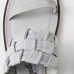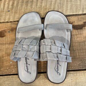 🖤 Free People Winding River Slip-On Flat Quilted Woven Sandals Grey Blue
