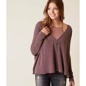 Free People Sz XS Wine Purple Oceanview V-Neck Long Sleeve Oversized Thermal Top
