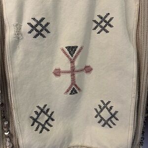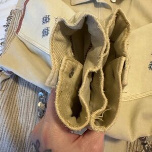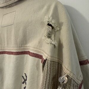 Free People Winter Cactus Denim Jacket. OVERSIZED size Medium. Trucker-style jacket featured in a boxy, oversized silhouette with exaggerated embroidery throughout for added dimension. Button-front closure. Double bust patch pockets. Large sequins. Perfectly distressed. Worn once. This jacket is heavy! The denim part is very soft and the part with all the amazing embroidery is thick like canvas. Itβs amazing and stunning jacket. I wish it worked for me! π Sold out online MSRP $298.
