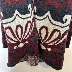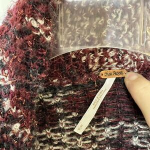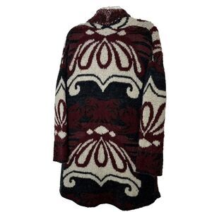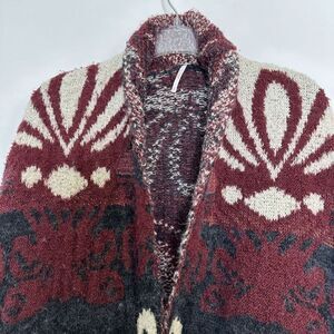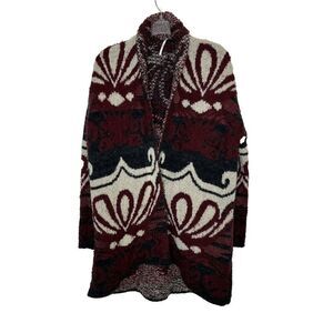 Free People Winter's Day Cardigan Berry Combo Small Wool Gray Burgundy Sweater