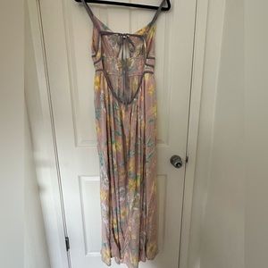 The Wisteria Maxi Dress is the perfect one when it comes to elevating your feminine charm, showcasing a colorful floral print throughout for that gentle touch. It features a V-neckline and slender shoulder straps that are attached to a flattering bodice, further complemented with a cutout detailing at the bust and a defined waist. Turn around to show off a flirty tie detailing and an open back!