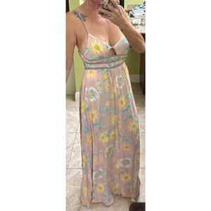 Free People Wisteria Pastel Floral Cutouts Maxi Dress light combo XS boho