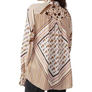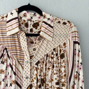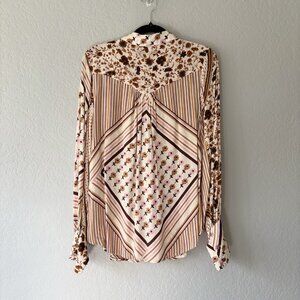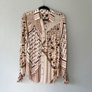 Free People Woman Size XS Hazel Button Down Shirt Blouse Ivory Floral Viscose
