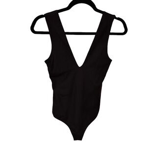 Free People Woman’s Keep It Sleek Bodysuit size XS solid Black Deep V NWOT