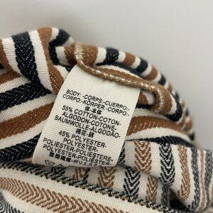 Good pre owned condition. Pleated waist. Belted. Tan, brown and black striped.
