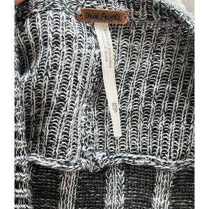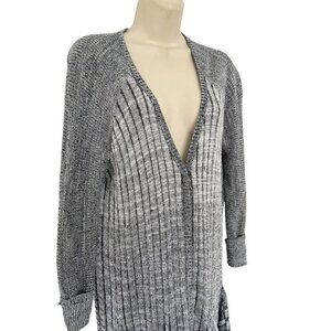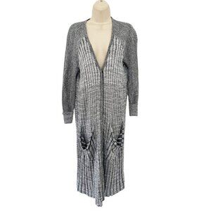 Free People Womans Sz XS Gray Ribbed Shadow Stripe Long Duster Cardigan Sweater