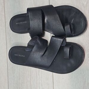 Sleek black leather sandals by Free People. Effortless style and comfort.