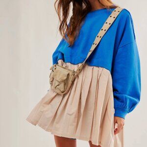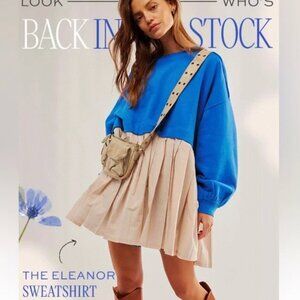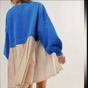 Free People Women Blue Combo Eleanor Sweatshirt Tunic Dress Size L NWOT 128$