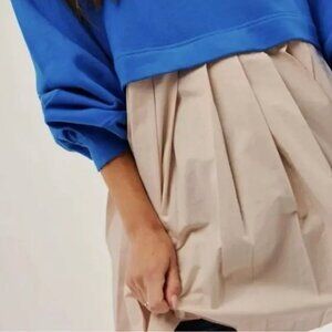 Stand out in this sweet and special sweatshirt featuring a slouchy, cropped top piecing and exaggerated pleating at bottom for added dimension.